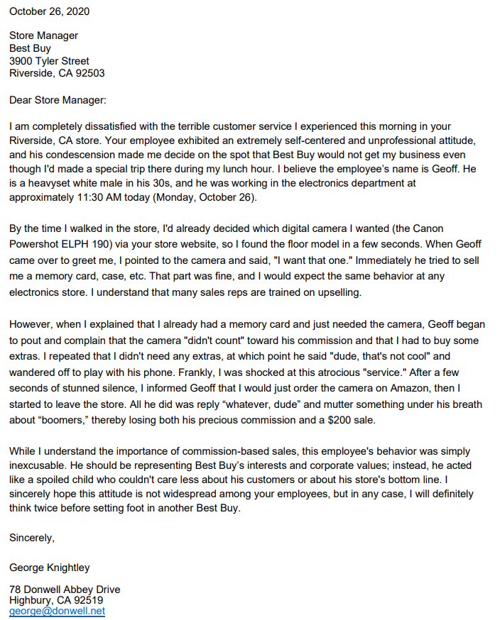 Analyze And Respond To A Customer Service Complaint Chegg Com